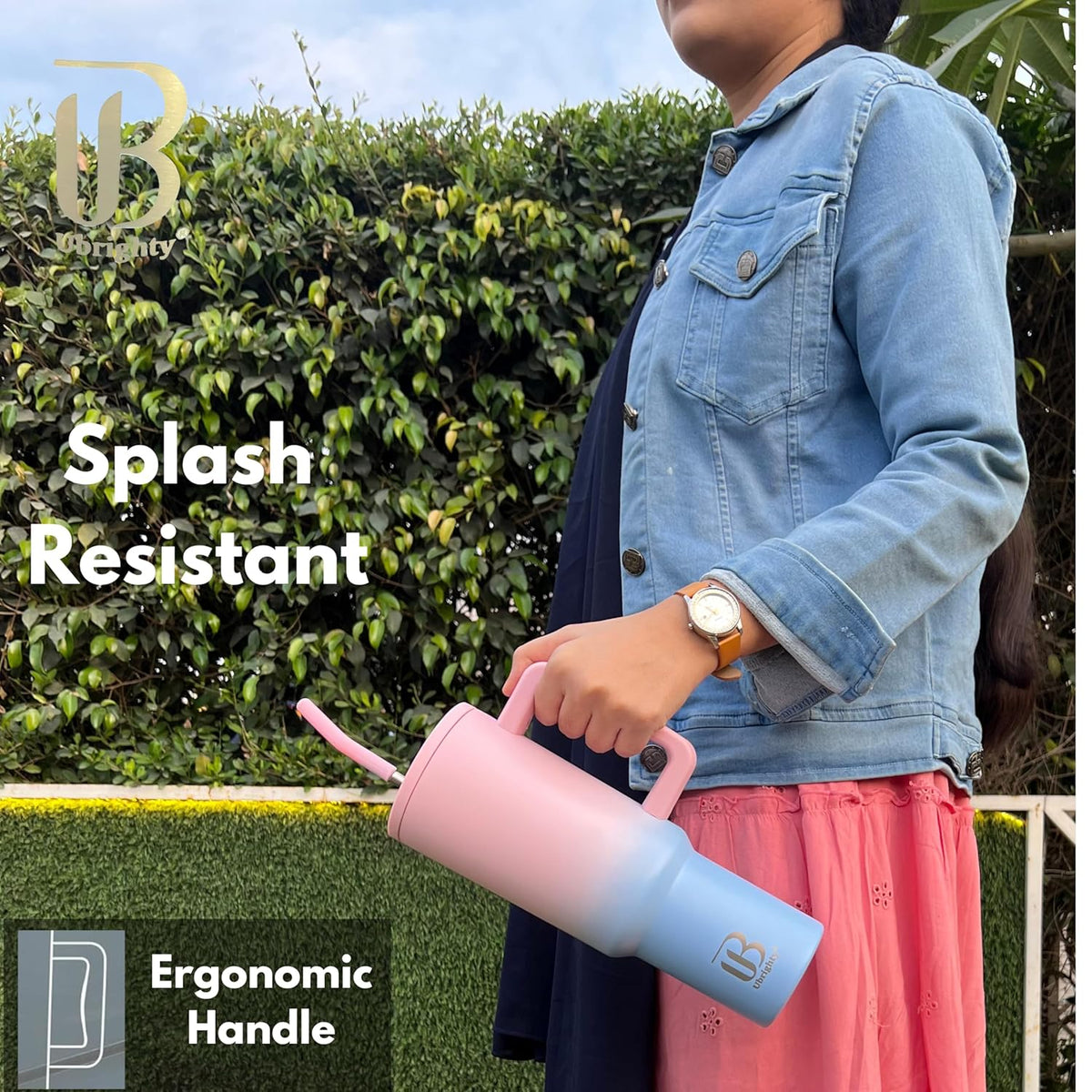 Large Travel Mug with 2 Straws | Anti-Spill, C...