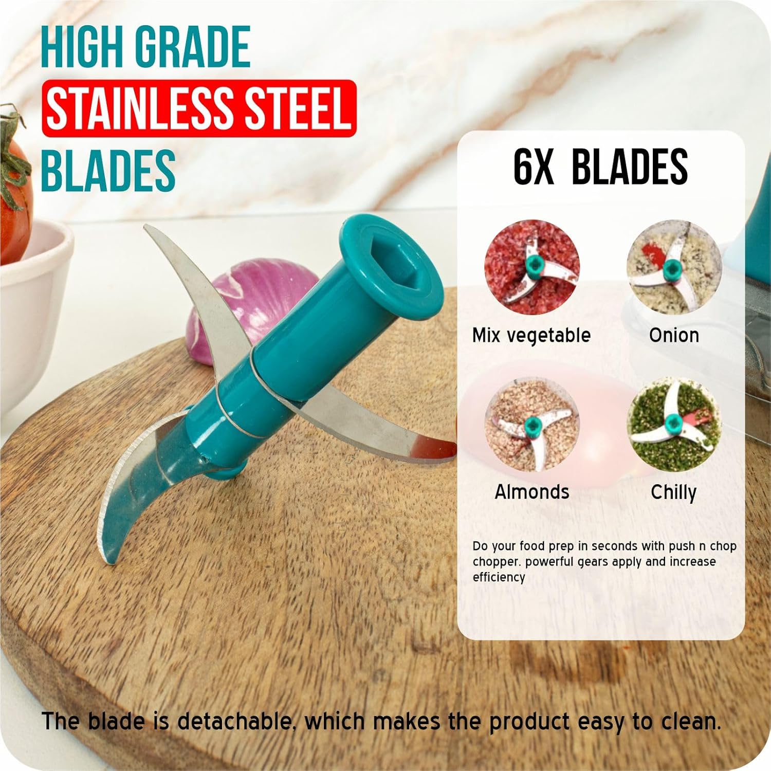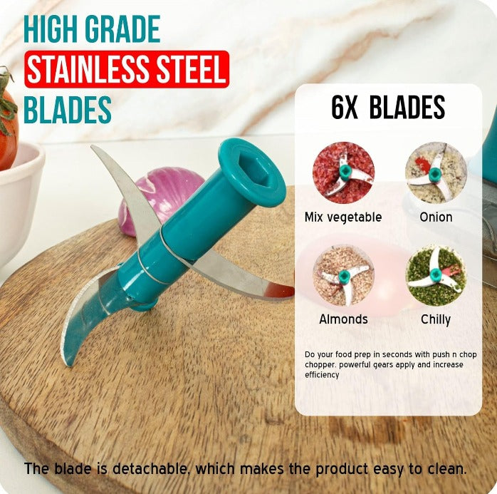 🔪 6 Stainless Steel Blades – Ultra-sharp blades ensure faster, finer, and more even chopping every time.