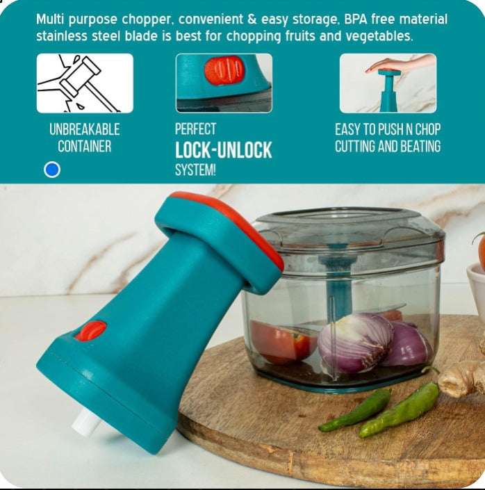 Nexus Drop™ Manual Press Food Chopper – Fast, Mess-Free Vegetable & Fruit Cutter