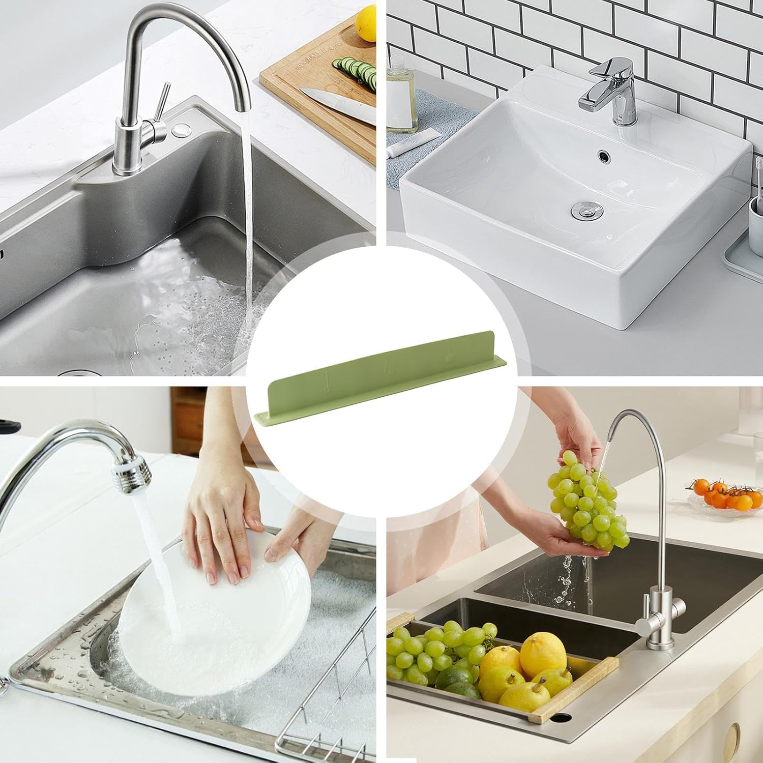 ✔ Prevents water splashes and keeps counters dry